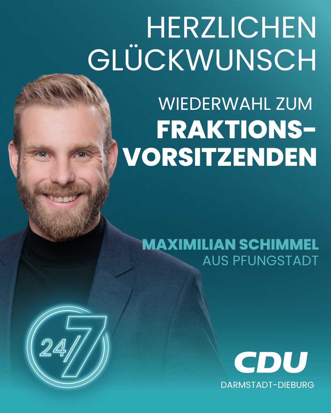 Nach der Kommunalwahl 2026 stellt die CDU Darmstadt-Dieburg 23 Kreistagsabgeordneten. Diese haben auf ihrer konstituierenden Fraktionssitzung am 21. März 2026 unter Leitung des CDU-Kreisvorsitzenden Lutz Köhler den Pfungstädter Bürgermeister Maximilian Schimmel mit 94,4 % erneut zum Fraktionsvorsitzenden gewählt. Schimmel stand bei der Kreistagswahl auf Listenplatz 4 seiner Partei und führt die CDU-Kreistagsfraktion bereits seit fast fünf Jahren. „Ich freue mich sehr über das erneute Vertrauen meiner Fraktion und möchte in den nächsten fünf Jahren gemeinsamen mit dem Ersten Kreisbeigeordneten Lutz Köhler und einer starken CDU-Kreistagsfraktion den Landkreis Darmstadt-Dieburg weiter gestalten“, so Schimmel nach seiner Wiederwahl. Er freut sich auf die nun anstehenden Koalitionsverhandlungen mit der SPD, um möglichst viele CDU-Inhalte im Koalitionsvertrag festschreiben und später umsetzen zu können.